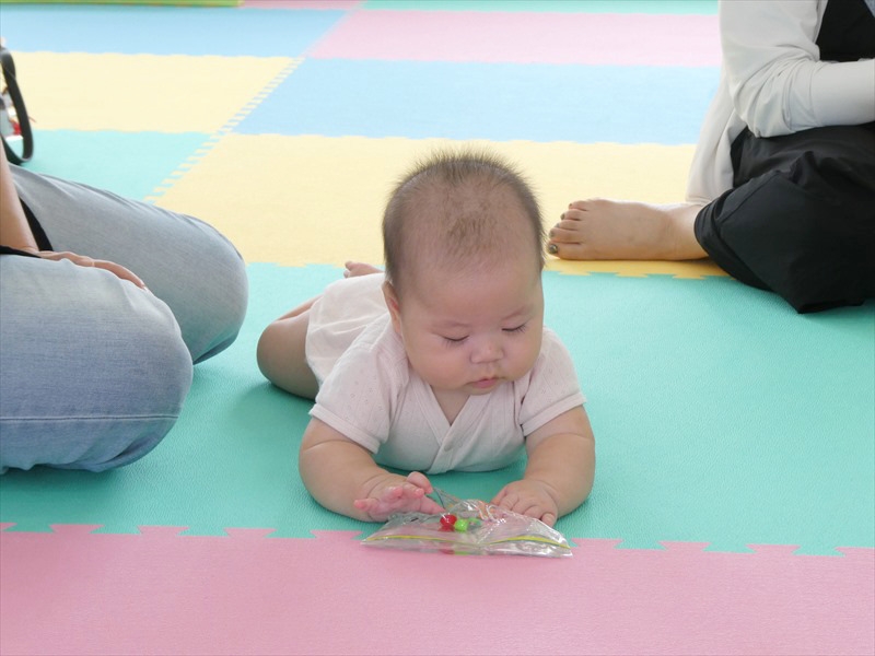 ふれあい遊びではたくさんスキンシップをとり、赤ちゃんも嬉しそうにしていました。 今月はハイハイピックをしました。 泣きながらもお母さんの所までハイハイで行くことができていました。