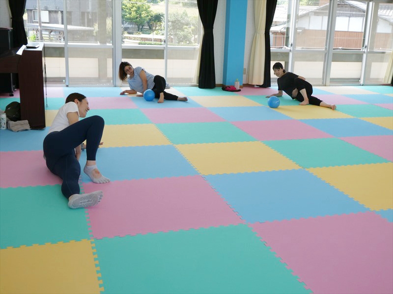 今回が2回目のピラティス。 リピーターママさんも多く、気持ち良さそうに体を動かしリフレッシュしていました。 マタニティママさんも、動ける範囲で体を動かしていました。