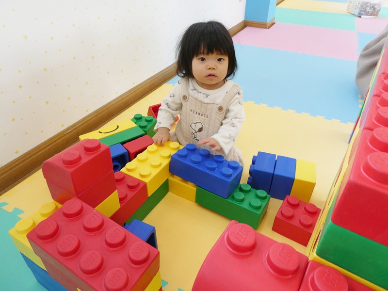 身体測定をしたあとに手形を取りました。 なかなか増えなかった体重が増えていたり、身長が伸びていたりとお母さん方も成長している様子を知ることができて嬉しそうでした。 コーナー遊びでは、遊びたい玩具で思いきり遊ぶことができていました。