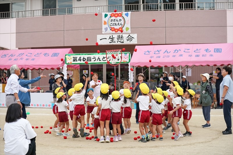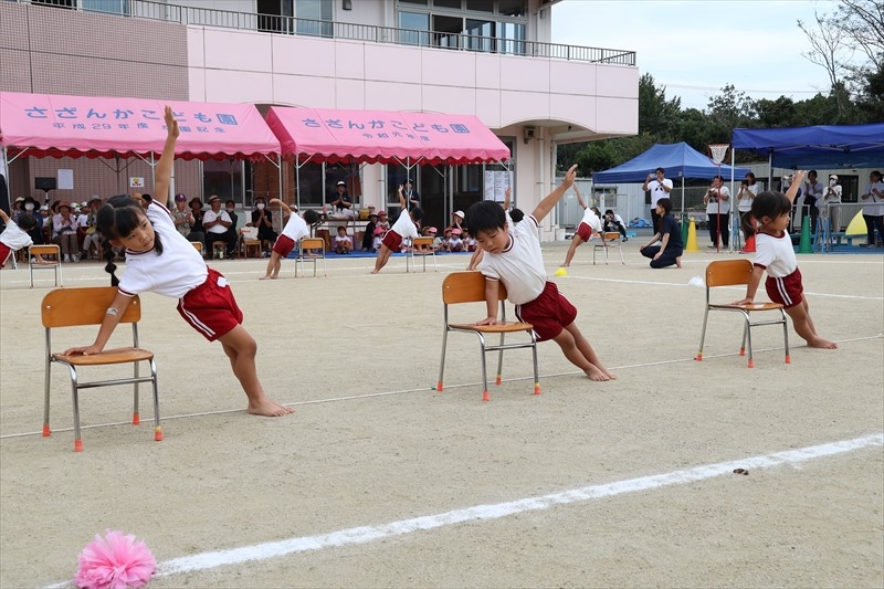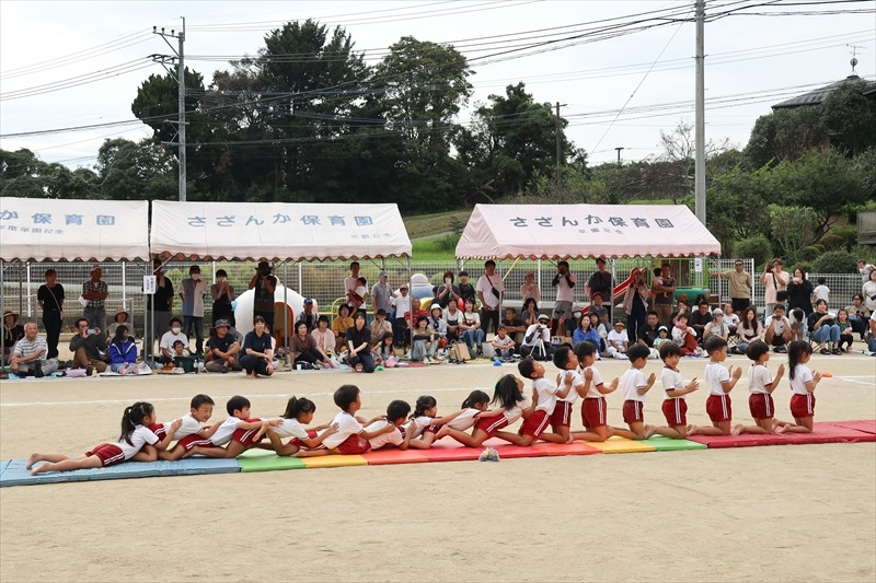 10月18日(土) 運動会をしました!たんぽぽ・なでしこ組遊戯(プログラム4、TKG~たまごかけごはん~) たんぽぽ・なでしこ組(プログラム10、かけっこ) たんぽぽ・なでしこ組親子競技(プログラム13、パンどろぼうに変身!) すみれ組競技(プログラム3、ポケモンゲットだぜ!!) すみれ組遊戯(プログラム11、それもいいね) すみれ組(プログラム16、かけっこ) れんげ組(プログラム2、かけっこ) れんげ組競技(プログラム8、ミニオンのハチャメチャミッション) れんげ組遊戯(プログラム15、ギラギラサマー) ふじ組椅子体操(プログラム6、26人の輝き) ふじ組(プログラム12、かけっこ) ふじ組バルーン(プログラム17、最高到達点) ちゅうりっぷ組和太鼓演奏(オープニング、ultra soul) ちゅうりっぷ組(プログラム7、かけっこ) ちゅうりっぷ組組体操 (プログラム18、さざんか万博~未来への架け橋) プログラム9、玉入れ(老人クラブ、来賓、ふじ・ちゅうりっぷ組) プログラム14、リレー(ふじ・ちゅうりっぷ組) |