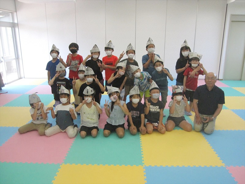 防災教室の数日前に津波警報が出て驚いていた子ども達。 いつも以上に集中して話を聞いたり質問したりして勉強をしていました。 難しい話だけではなく、身近な物で作る防災グッズ作りでは、新聞紙で作る帽子の作り方を教えてもらいました。