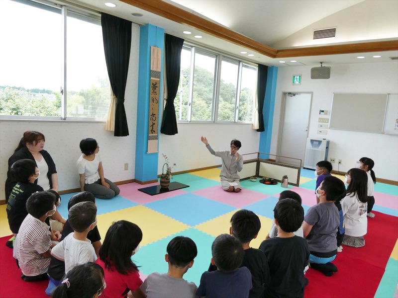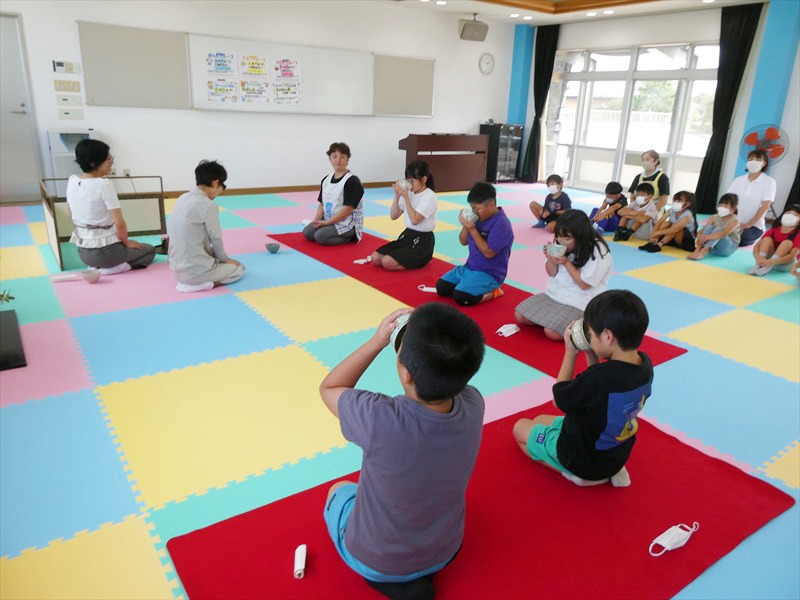 初めて茶道体験する子どもが多くよく話を聞いていました。 お菓子やお茶をいただく作法も初めてだったので緊張しながらも上手にできていました。