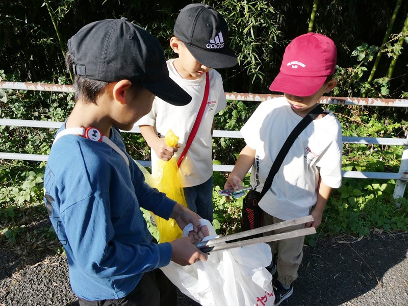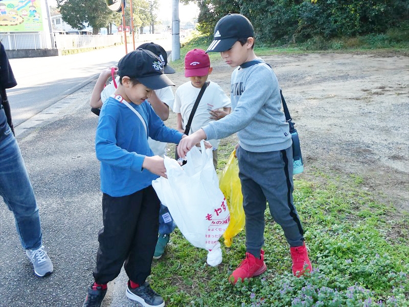 児童クラブから原山方面でゴミ拾いをしました。 ゴミを見つけると「あった」「これは何ゴミ?」など確認をしながらゴミ袋に入れていました。