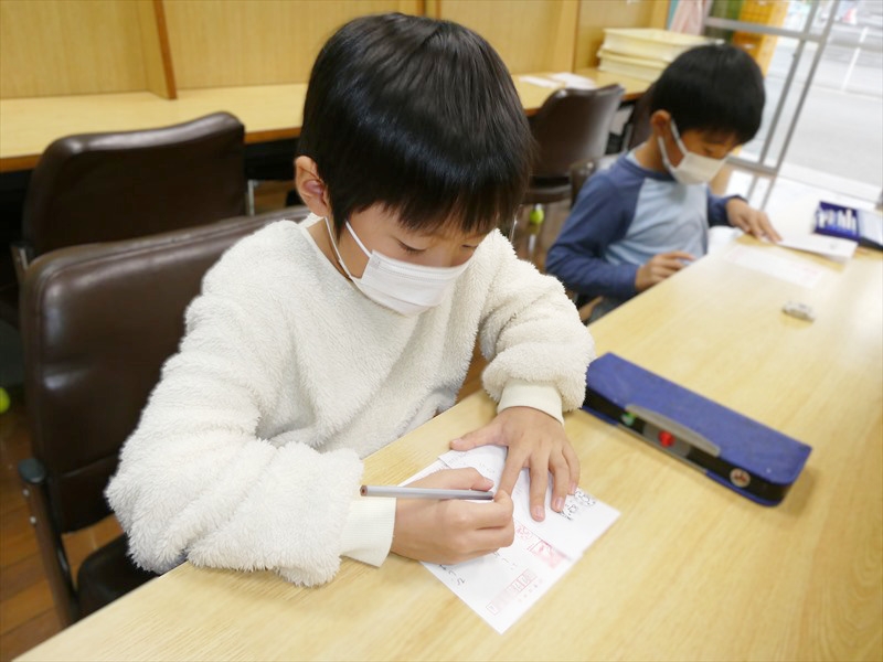 消しゴムハンコでスタンプをして年賀状を作りました。 スタンプをする場所を確認しながら丁寧に押していました。 宛名書きも間違いが無いように見本を見ながら丁寧に書いていました。