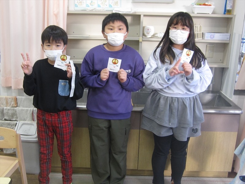 クラブを退会する友達のお別れ会をしました。 退会する子どもは児童クラブでの思い出を話し、継続する子どもからも退会する友達へメッセージを読みました。 「また遊ぼうね」と話をしながら最後のおやつを食べていました。