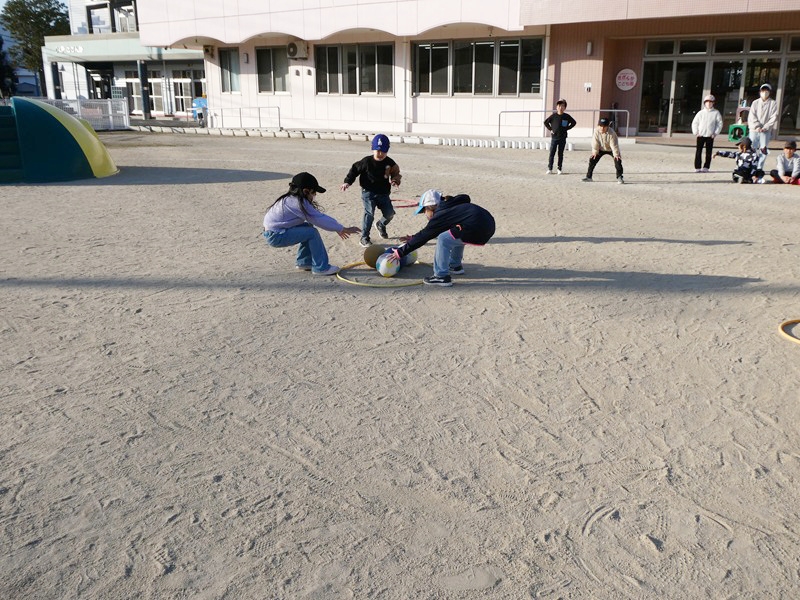 初めて遊ぶ遊びでしたが、ルールをすぐに理解し、チームで協力をして遊ぶことが出来ていました。