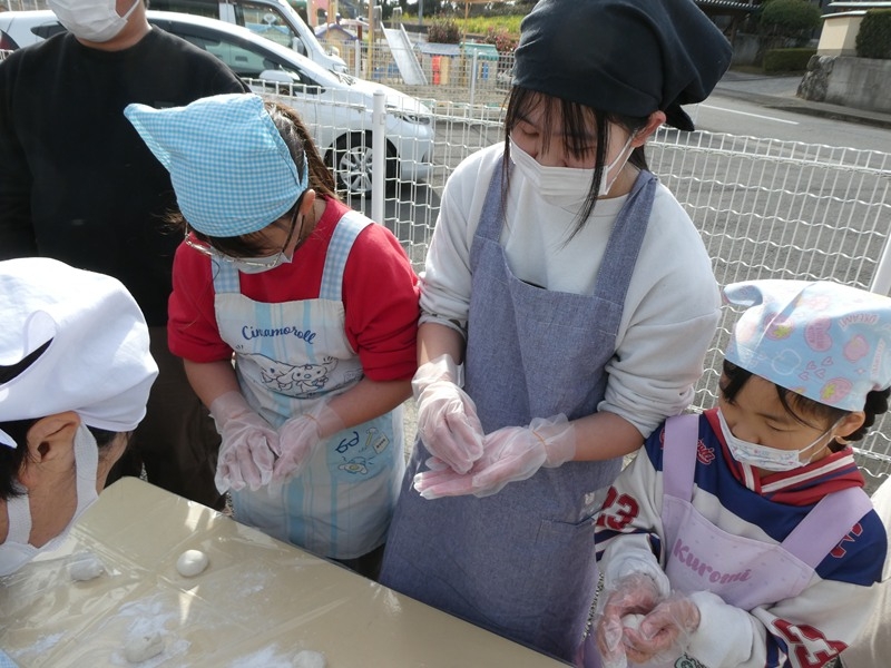 親子でもちつき大会を行いました。 杵と臼を使ってもちつきを楽しみました。 つきたてのおもちを丸めたり食べたり、杵を持ってもちをついたりと楽しい時間を過ごすことができていました。