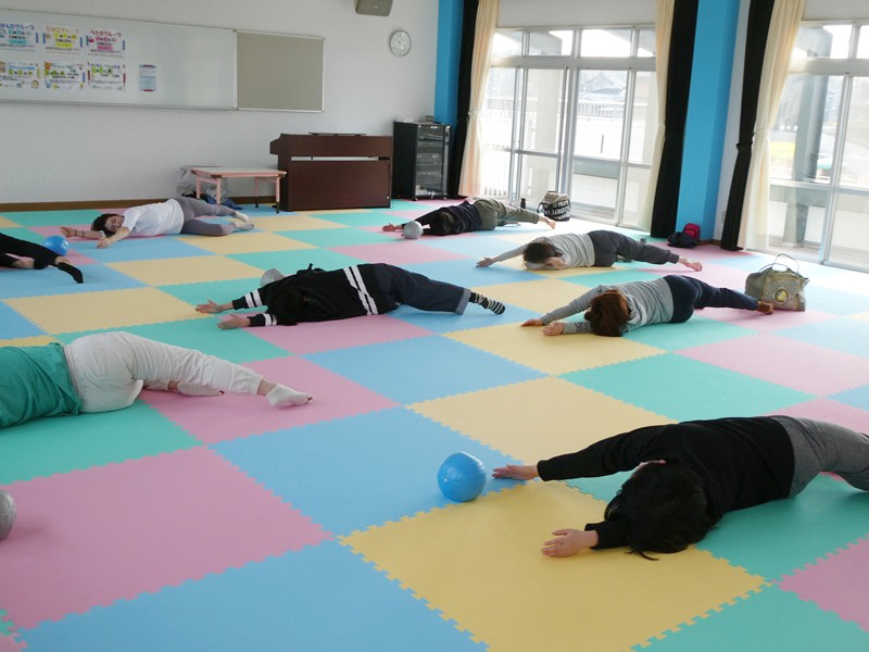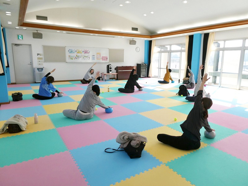 今年度から始まったピラティス。 マタニティママだけでなく、子育て中のママも参加でき大盛況でした。 1時間ゆっくりと身体を動かしリフレッシュしていました。