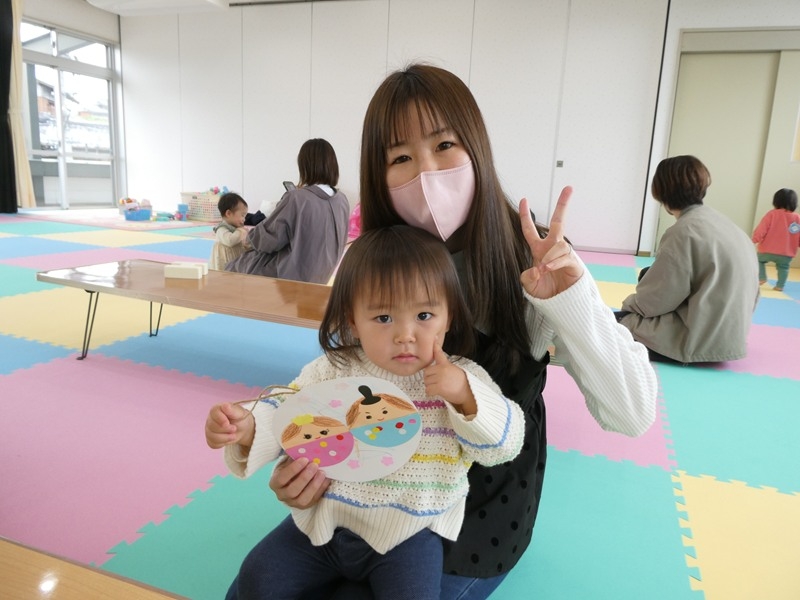 主任児童委員さんと育児について話をしたり、親子でふれあい遊びや製作をしました。 子どもだけでなくお母さんも楽しそうに遊んでいました。