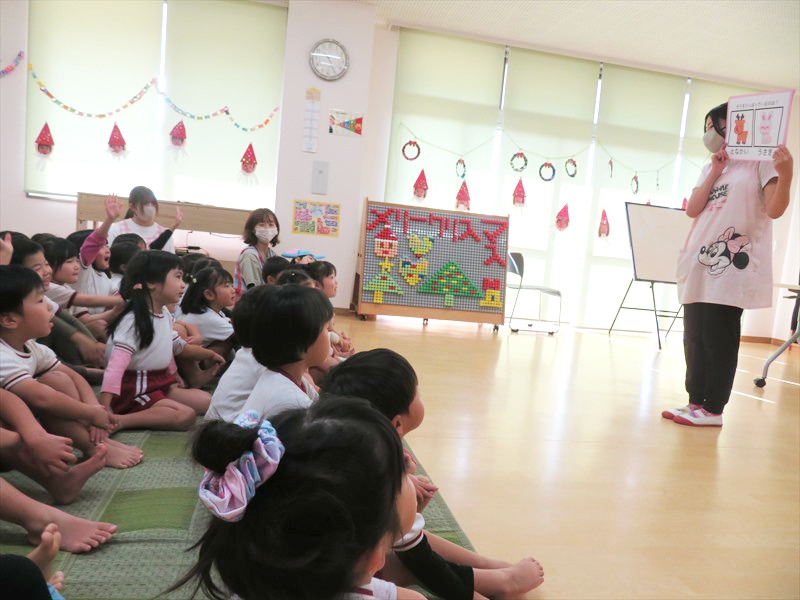 10月18日(土) 運動会をしました!たんぽぽ・なでしこ組遊戯(プログラム4、TKG~たまごかけごはん~) たんぽぽ・なでしこ組(プログラム10、かけっこ) たんぽぽ・なでしこ組親子競技(プログラム13、パンどろぼうに変身!) すみれ組競技(プログラム3、ポケモンゲットだぜ!!) すみれ組遊戯(プログラム11、それもいいね) すみれ組(プログラム16、かけっこ) れんげ組(プログラム2、かけっこ) れんげ組競技(プログラム8、ミニオンのハチャメチャミッション) れんげ組遊戯(プログラム15、ギラギラサマー) ふじ組椅子体操(プログラム6、26人の輝き) ふじ組(プログラム12、かけっこ) ふじ組バルーン(プログラム17、最高到達点) ちゅうりっぷ組和太鼓演奏(オープニング、ultra soul) ちゅうりっぷ組(プログラム7、かけっこ) ちゅうりっぷ組組体操 (プログラム18、さざんか万博~未来への架け橋) プログラム9、玉入れ(老人クラブ、来賓、ふじ・ちゅうりっぷ組) プログラム14、リレー(ふじ・ちゅうりっぷ組) |